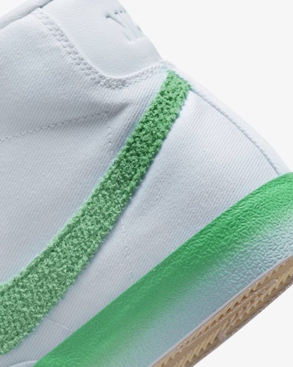 Let your style bloom with the warmer weather. The Nittgke Blazer Mid '77 started in basketball and over the decades became a staple for those who love the retro look and the premium feel. Bold green accents and an extra-soft Swoosh logo keep your look fresh and new.